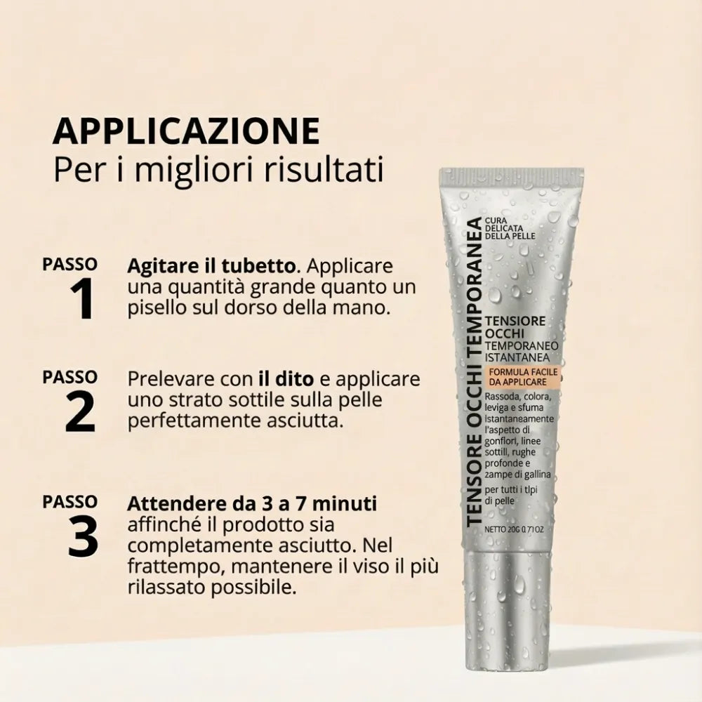 Non utilizzare prima creme idratanti o creme contorno occhi, poiché ciò potrebbe ridurre l’effetto tensore.